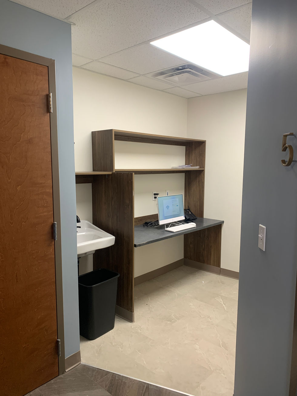 Lytwyn Construction completed a full conversion of a former bank into a modern dermatology center. The project included interior demolition, enclosing the existing drive-through, and a complete build-out featuring exam rooms, two offices, and a welcoming reception area. The finished space was delivered to meet the operational and clinical needs of the practice